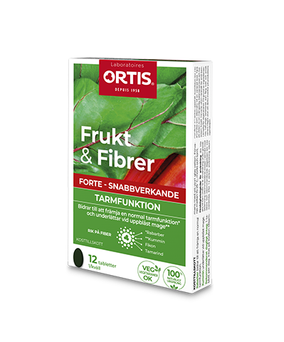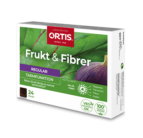 Ortis® Frukt & Fibrer är ett kosttillskott som är rikt på fibrer. Produkten finns som tabletter och tärningar. Samtliga är av 100% naturligt ursprung och innehåller inga konserveringsmedel. Frukt & Fibrer finns i två varianter, en som kallas Regular och en som kallas Forte. Frukt & Fiber Forte finns i tablettform och är en snabbverkande variant av Regular.